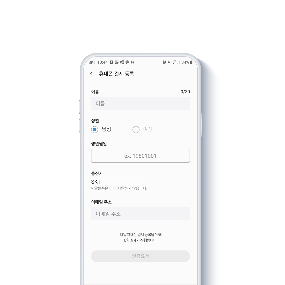 - 통신사 휴대폰 결제 서비스에 미동의 했거나 월별 한도를 초과한 경우 서비스 이용이 불가할 수 있습니다(통신사 문의 필요).