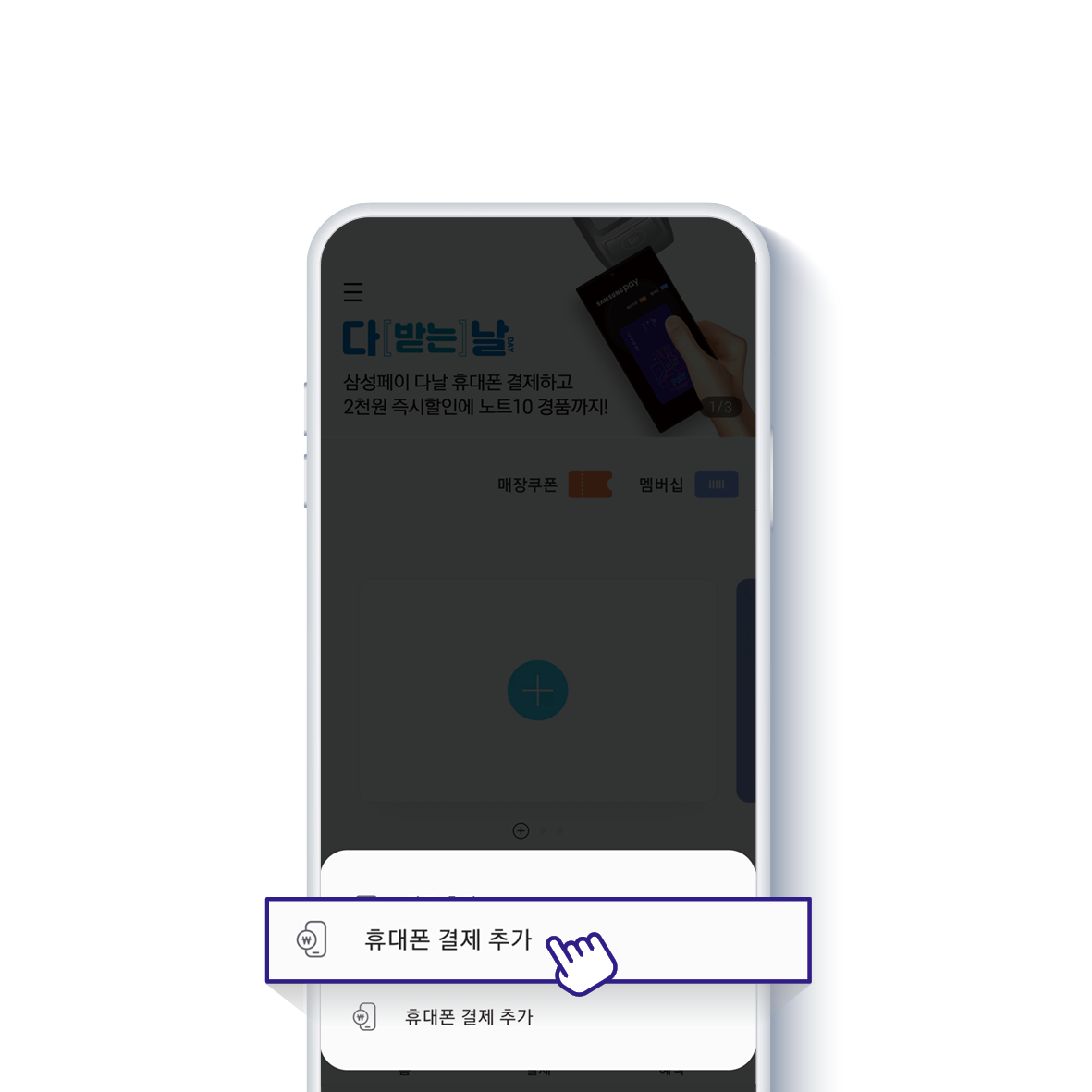 Step 3. 결제수단 중 '휴대폰 결제 추가'를 선택해주세요.